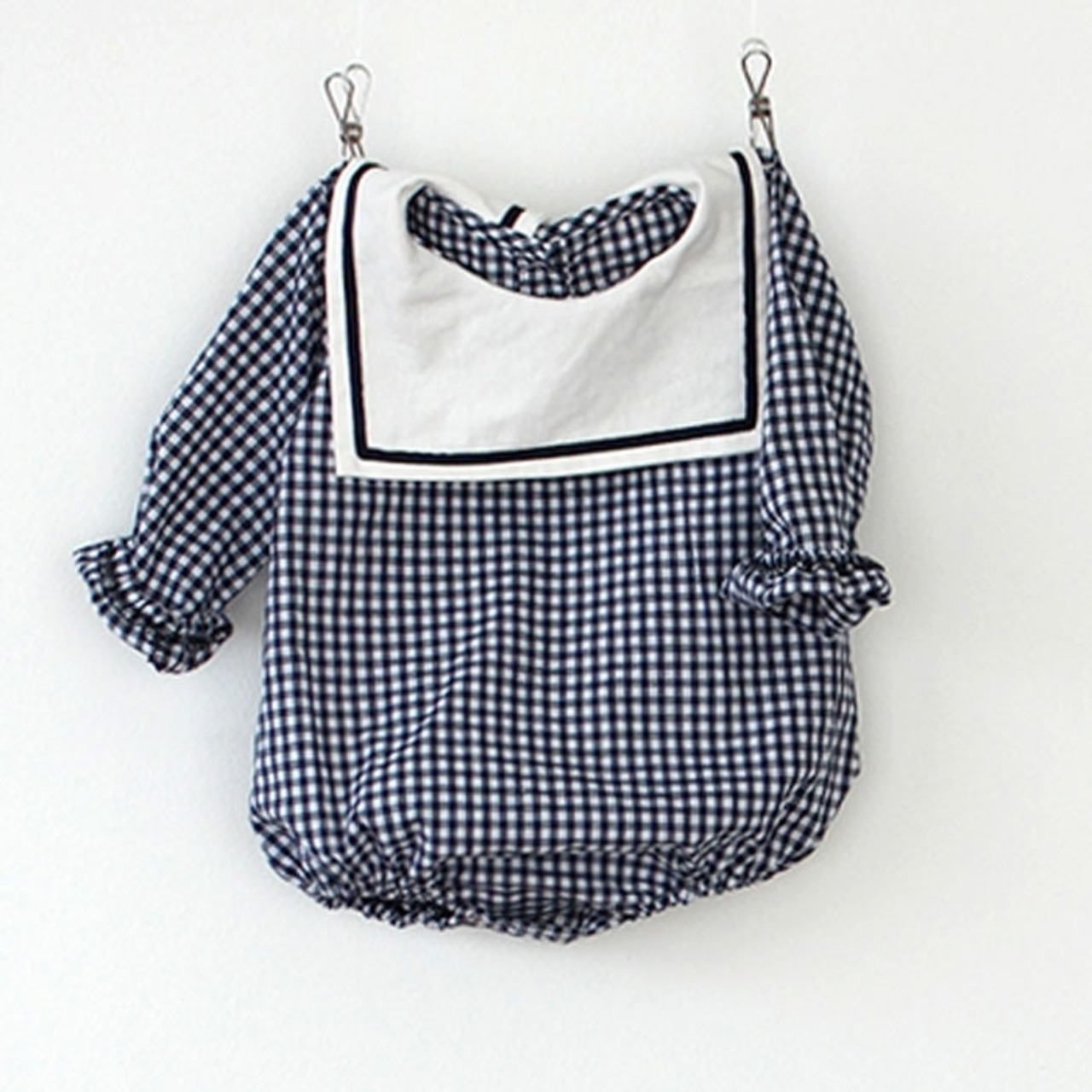 チェック柄ロンパース ギンガムチェック 襟付きロンパース スクエア襟 blackbean 春服