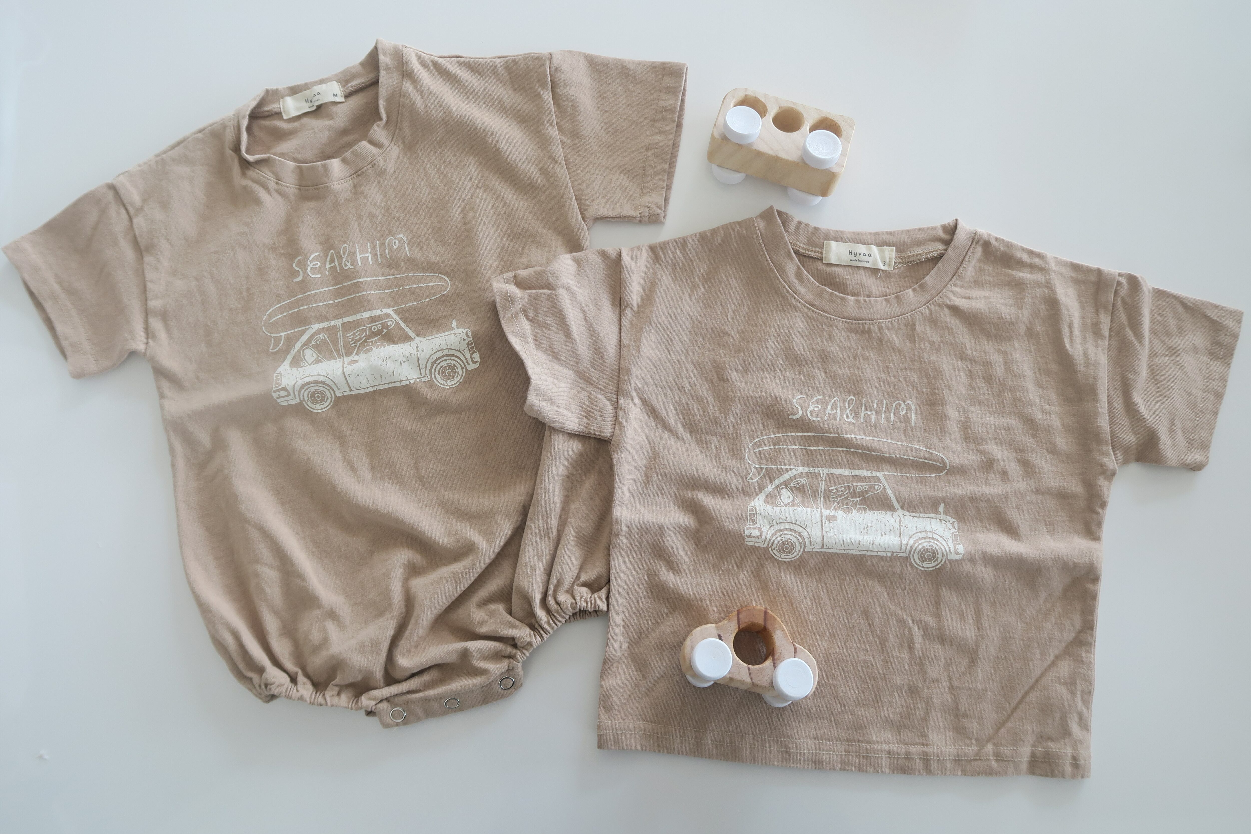 CARイラストと'SEA&HIM'レタリングがおしゃれなデザインロンパース *⑅❁