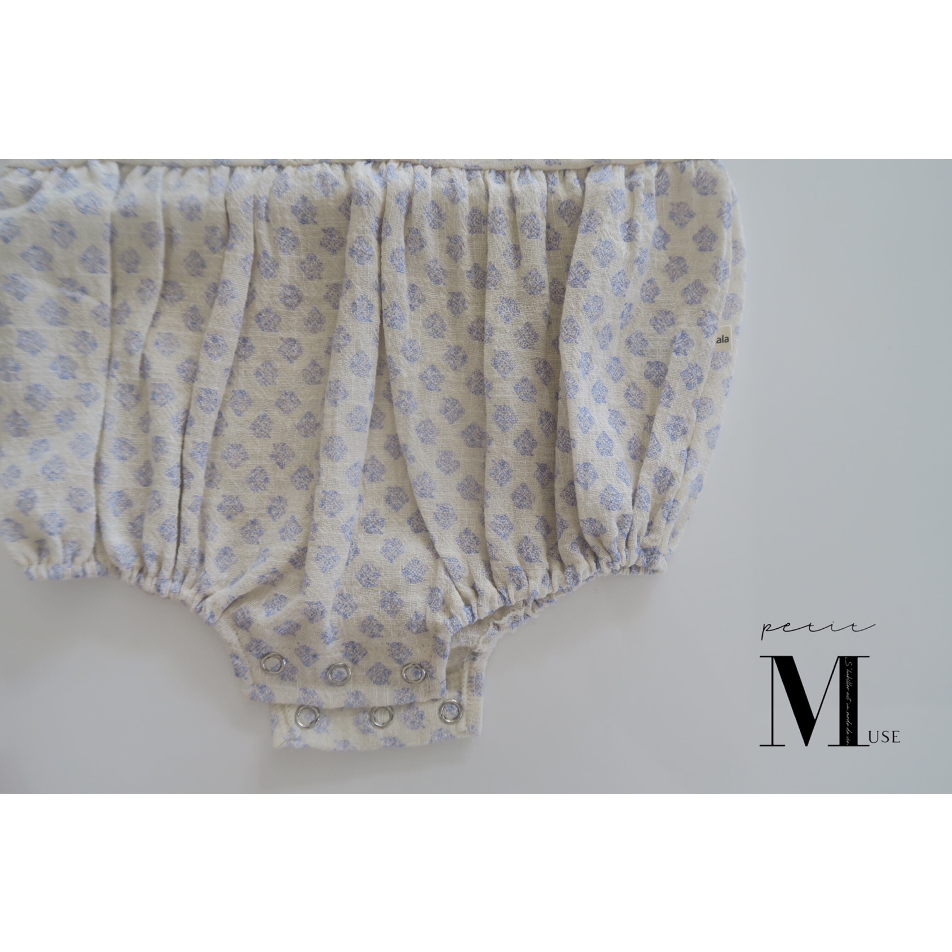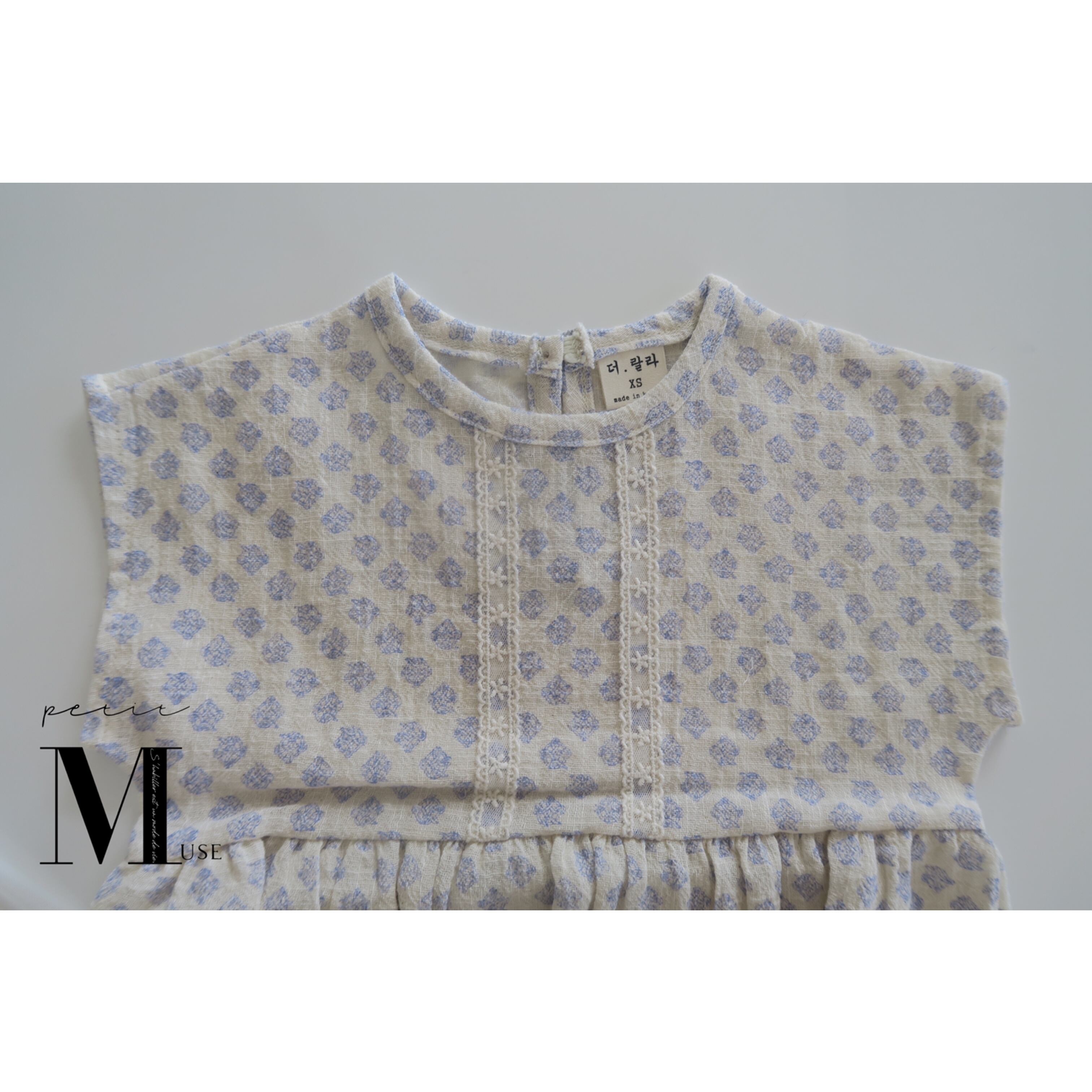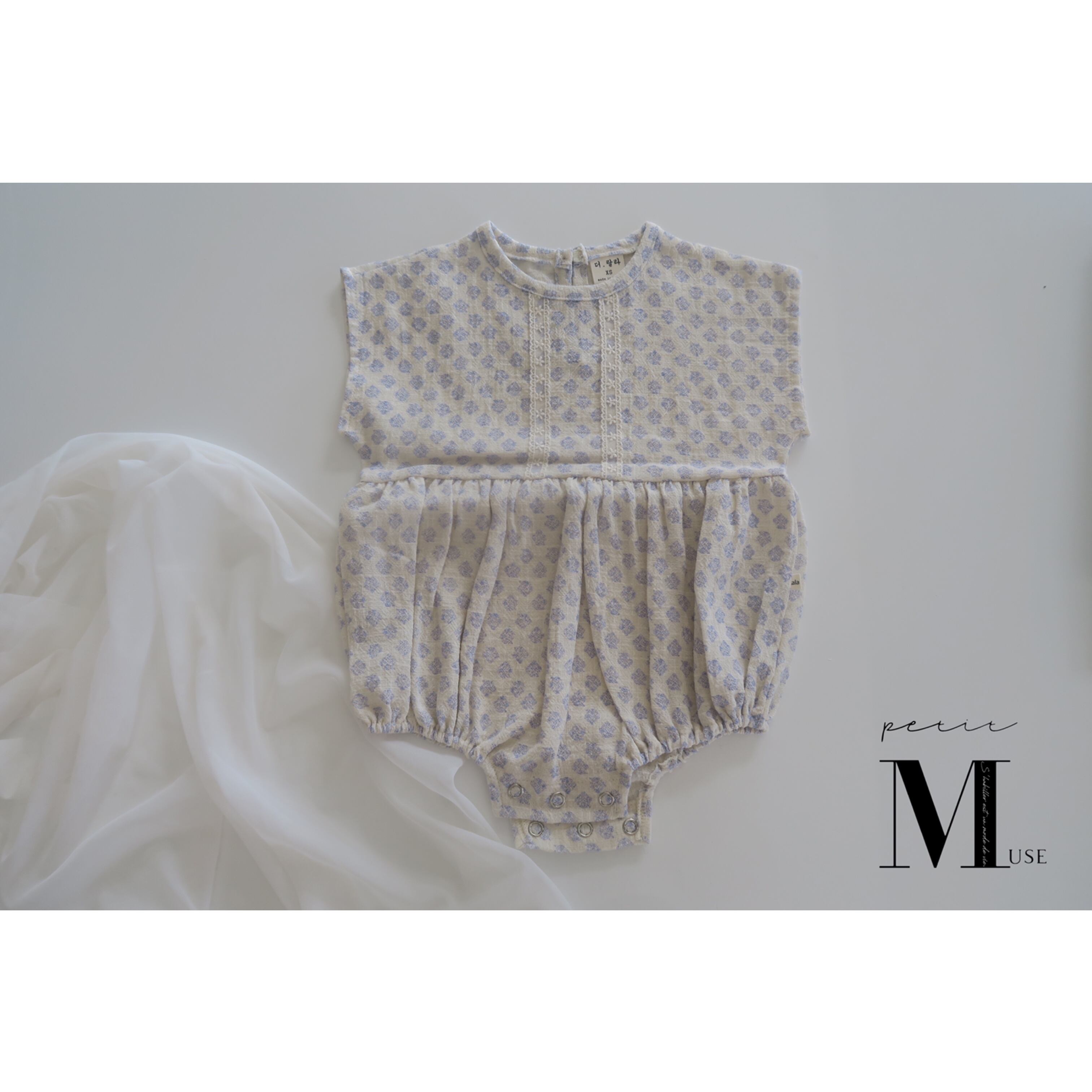 【レースライン花柄ロンパース (ブルー)】