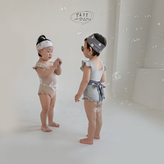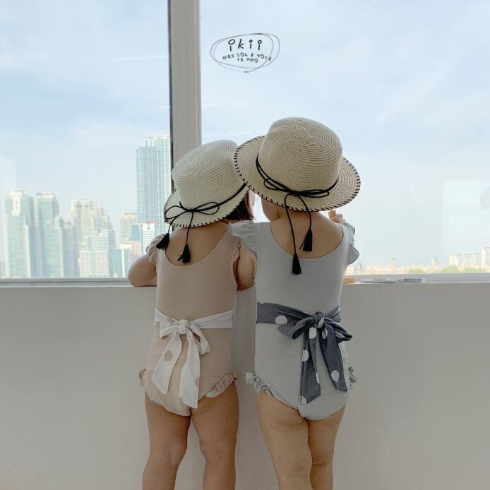 腰回りのドットリボンが他にはなかなかないデザインで、おしゃれな水着です♡