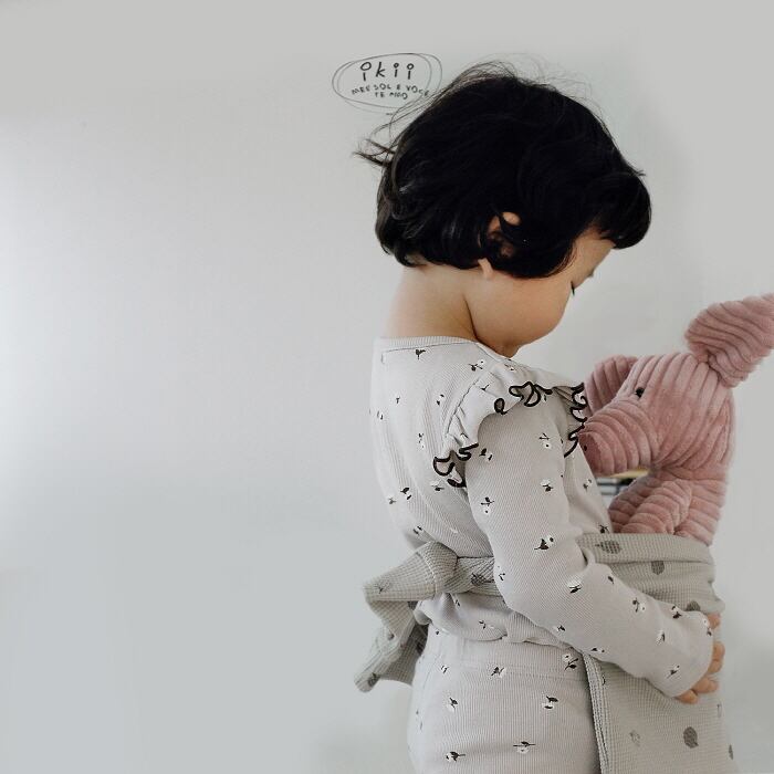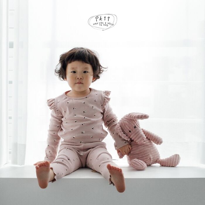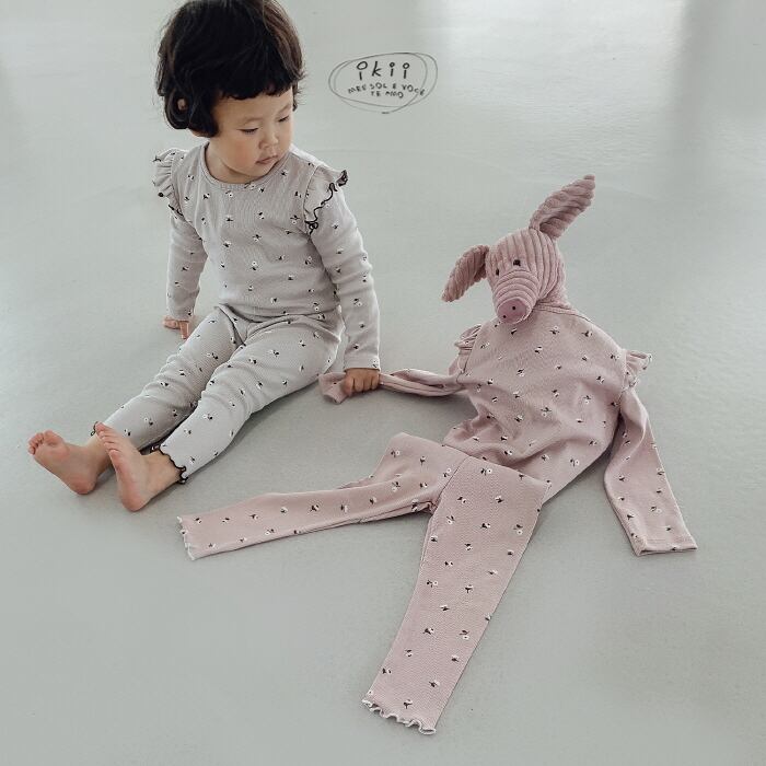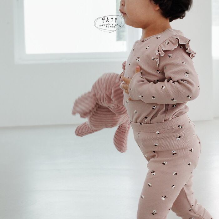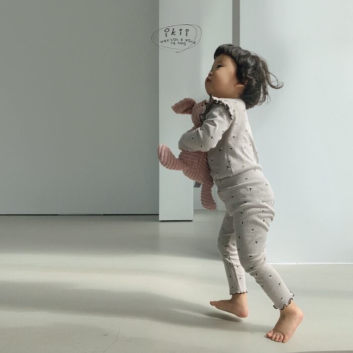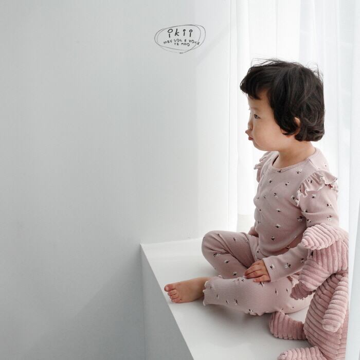 リブ素材でお子様も気持ちよく着られるセットアップなので